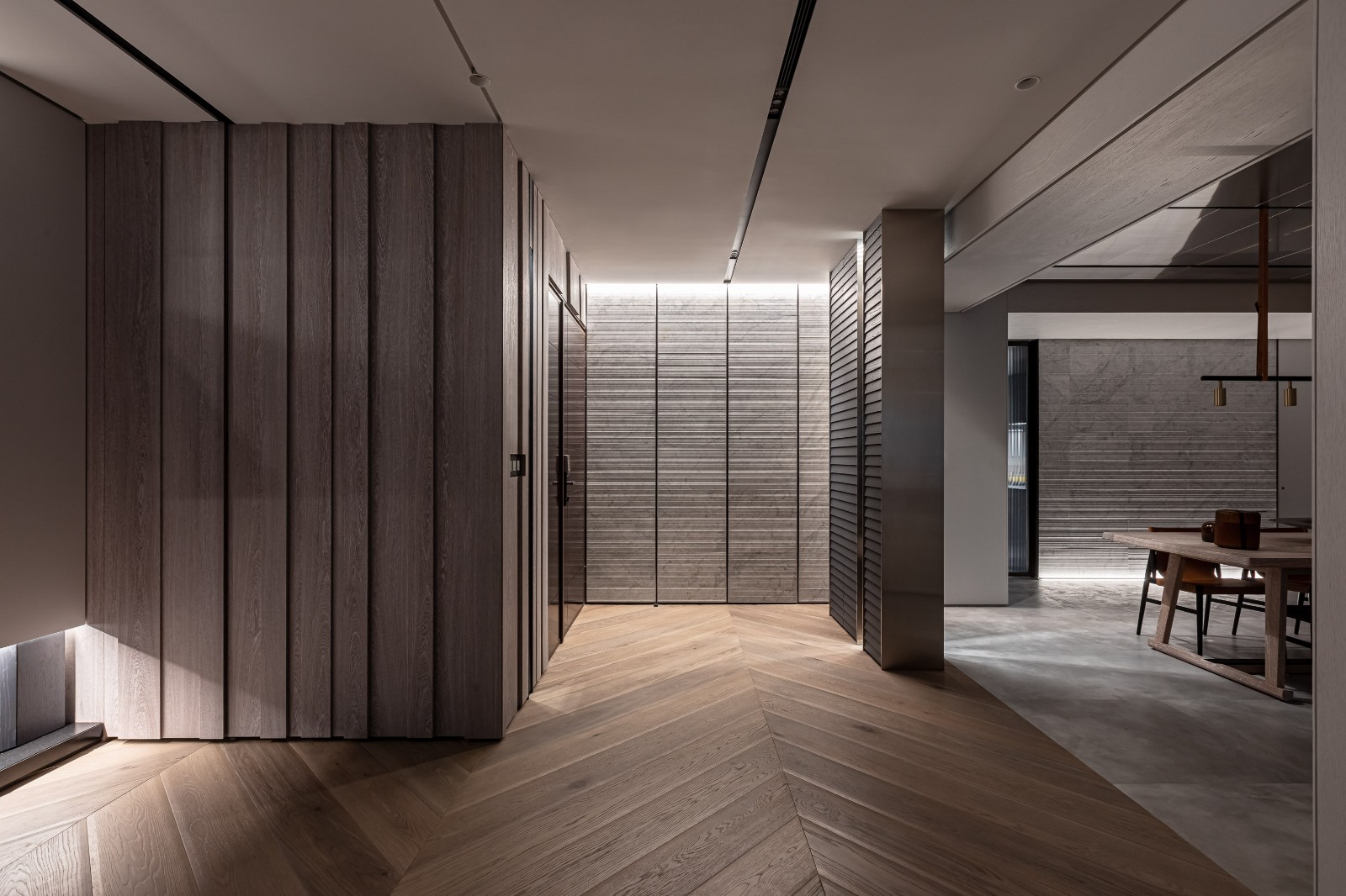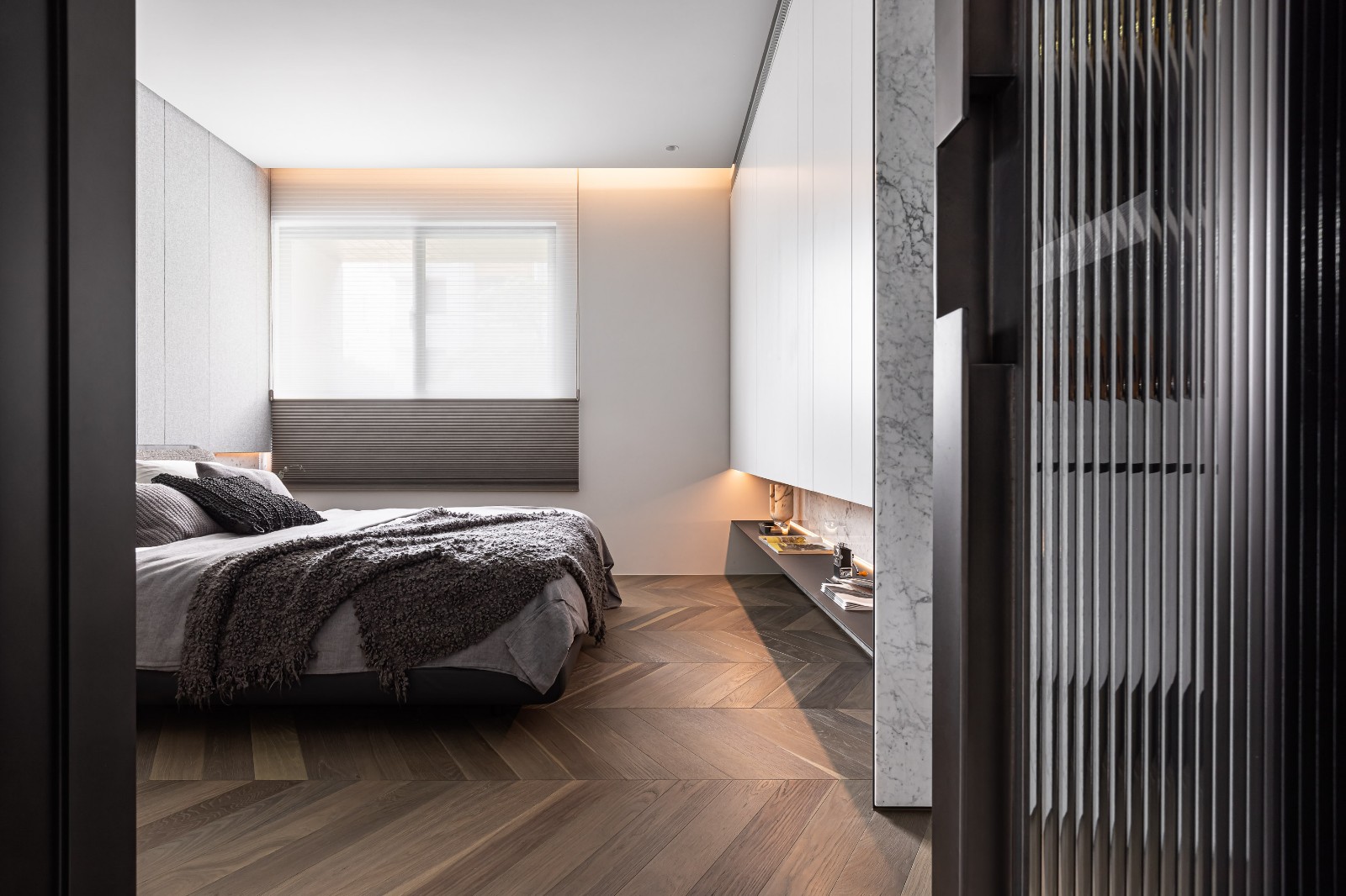 用簡約干練的線條來打造整個家庭,在簡潔的同時也通過一些精致小巧的元素來滿足功能,凸顯細節,在硬朗的線條之下隱藏著高貴的質感與格調,讓整體看起來更加豪華簡約,而不簡單